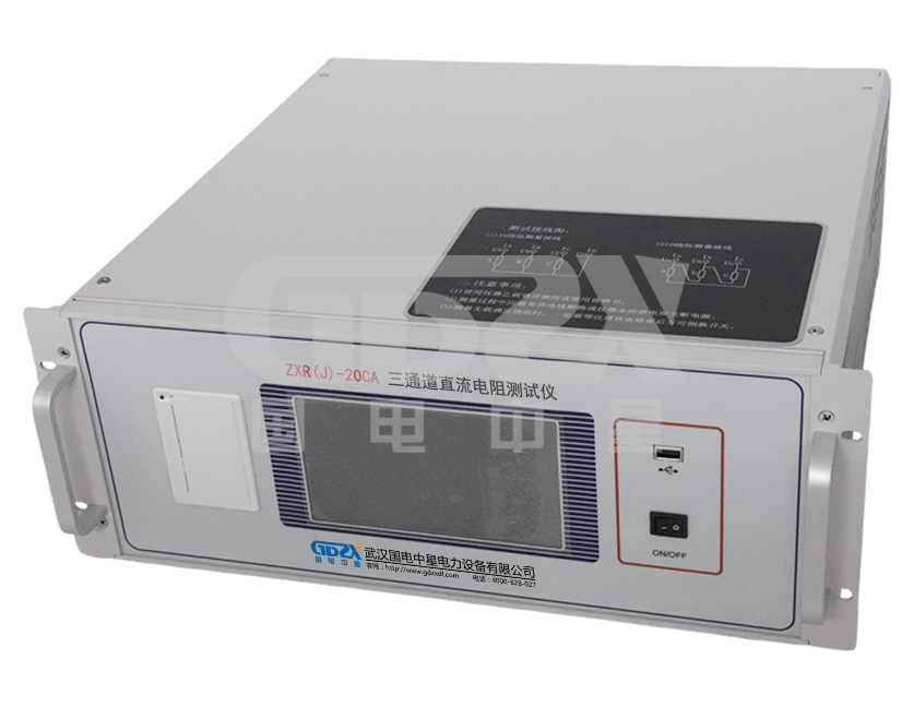 ZXR(J)-20CA三通道直流電阻測試儀能有效發現變壓器線圈的選材、焊接、連接部位松動、缺股、斷線等制造缺陷和運行后存在的隱患。為滿足變壓器直流電阻快速測量的需要,我公司研制了集三相同測試、助磁功能、消磁功能于一體的三通道直流電阻測試儀。該儀器是實現了三相同時加電,獨立電流采樣、電壓采樣,同時測量并顯示三相電阻值和三相不平衡率的功能,大大縮短了變壓器直流電阻的測試時間,解決了電力變壓器各分接繞組直流電阻測試耗時長的問題。