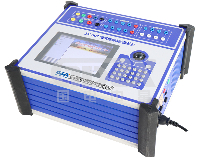 ZX-803三相繼電保護測試儀可對各種繼電器(如電流、電壓、反時限、功率方向、阻抗、差動、低周、同期、頻率、直流、中間、時間等)及微機保護進行檢定,并可模擬各種復雜的瞬時性和轉換性等故障進行整組試驗。